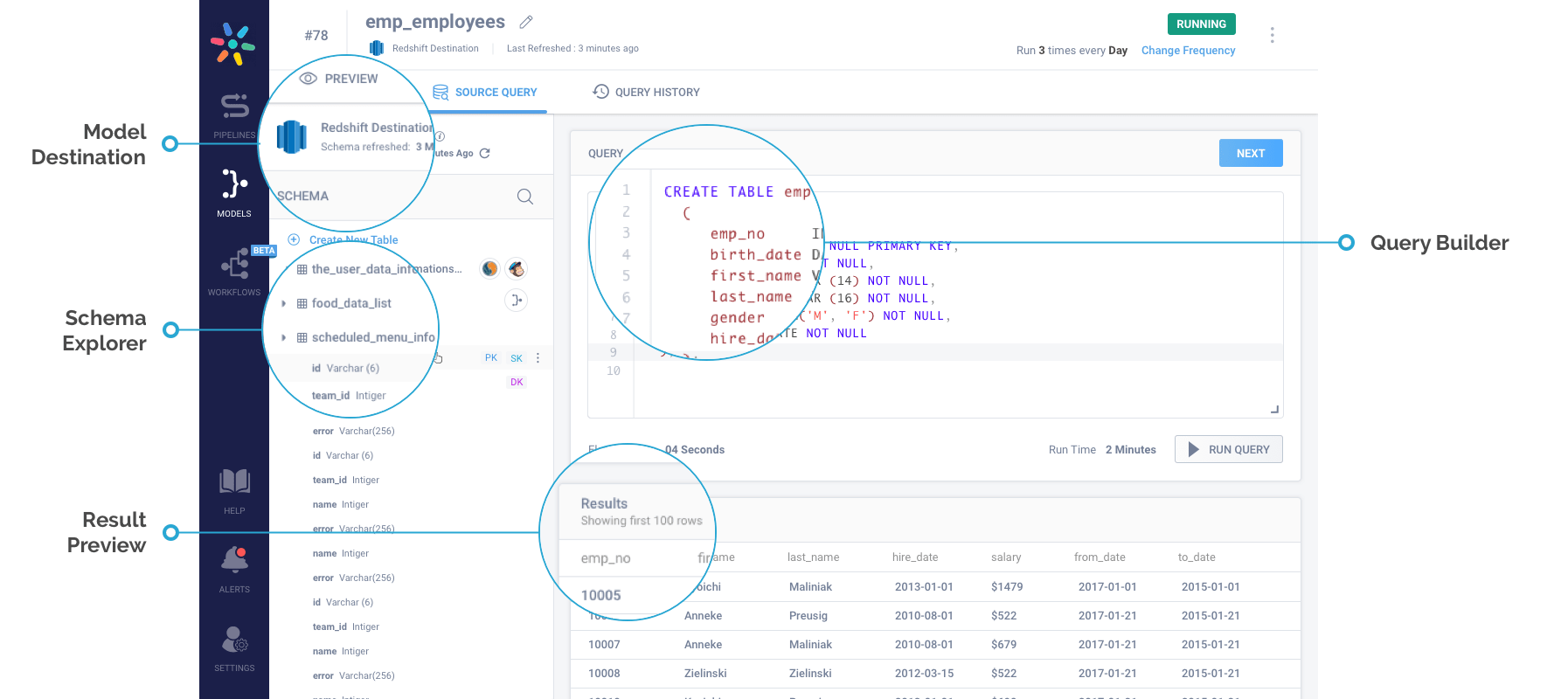 Write, Preview and Commit: Easily build your query with the help of schema explorer. Avail a real-time preview of the join before committing the same onto the warehouse. Gives a major boost to the data team’s productivity, doesn’t it?