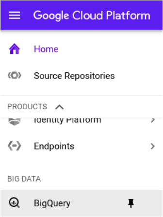 - Open BigQuery from the GCP hamburger menu.