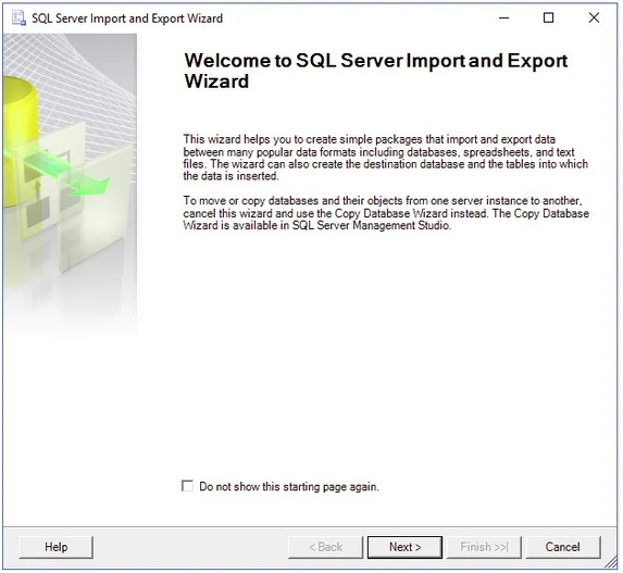 - Select SQL Server from the Source Type page.