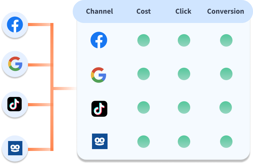 Choose from our fast-growing library of 60+ plug-and-play connectors covering all major marketing channels and tools. If you need others, simply use Rest API to connect any app.