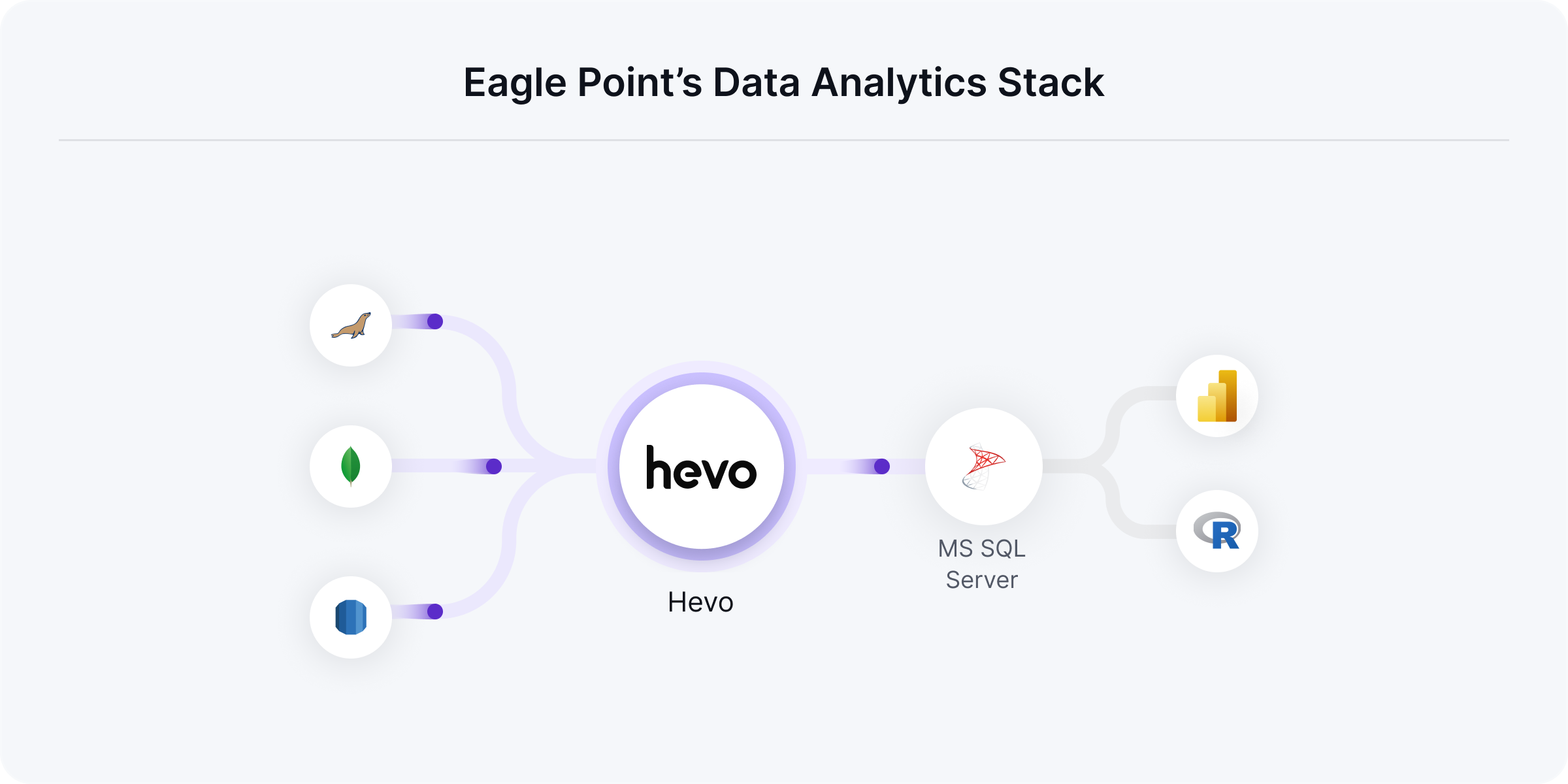 Using Hevo, Eagle Point has connected their key data sources - Salesforce, Gainsight, and SaaSOptics and in-house software Pinnacle Series using Hevo’s REST API integration. Data from these sources flows into Eagle Point’s MS SQL Server. Business users then run queries and create reports using this data on Microsoft Power BI and R.