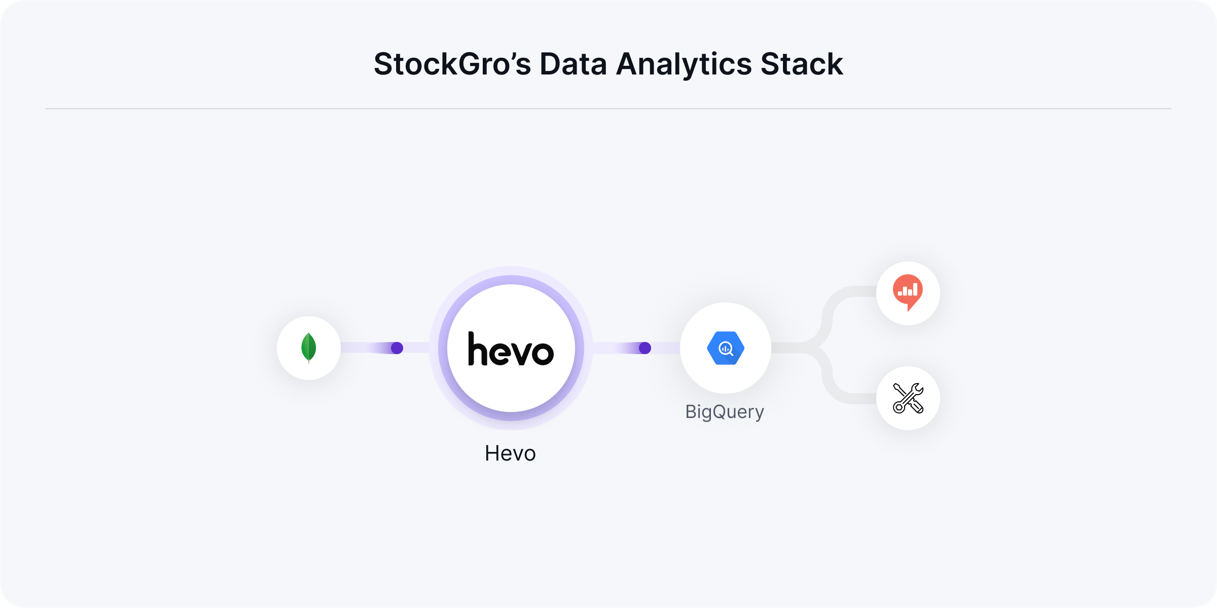 Raman and his team use Hevo to load the transactional data generated by StockGro’s 4 million users from multiple MongoDB instances and sync it with their Google BigQuery data warehouse, which works as a single source of truth. StockGro’s team uses Redash and custom tools to analyze the data in BigQuery and build dashboards.